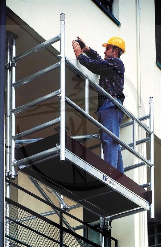 questa soluzione consente di operare in modo semplice e rapido ad ogni piano del condominio senza essere costretti ad installare un ponteggio con appoggio a terra.